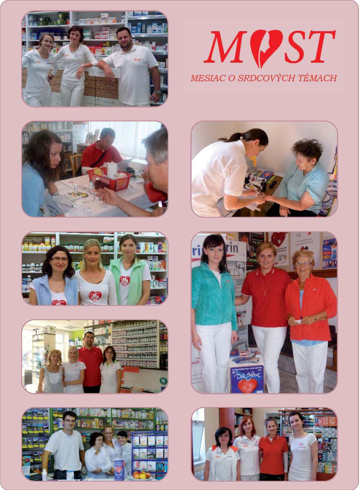 Dňa 28. 9. 2012 sa v rámci 6. ročníka projektu MOST (Mesiac O Srdcových Témach) opäť uskutočnil na Slovensku, možno povedať, už tradičný Deň srdca. Tento deň (vždy posledný septembrový piatok) býva vyvrcholením celo slovenskej edukačnej kampane MOST, ktorú každoročne v septembri realizuje v spolupráci so svojimi partnermi Slovenská nadácia srdca [1]. Počas Dňa srdca prebiehajú na desiatkach meracích miest na celom Slovensku vyšetrenia rizikových faktorov rozvoja srdcovocievnych ochorení. Tieto vyšetrenia vykonávajú zdravotnícki pracovníci jednak na vysoko exponovaných verejných miestach, ako sú námestia, nákupné centrá, vlaky, ale taktiež na zdravotníckych pracoviskách, ako sú regionálne úrady verejného zdravotníctva a predovšetkým verejné lekárne.