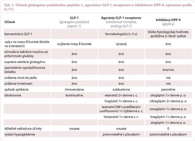 Ad a) Agonisty GLP‑1 receptorov (GLP‑1 RA) sa rozdeľujú do dvoch základných skupín [11–16]: a) látky na báze exendinu‑4 (exenatid, exenatid s predĺženým uvoľňovaním, lixisenatid), b) látky na báze GLP‑1 (liraglutid).